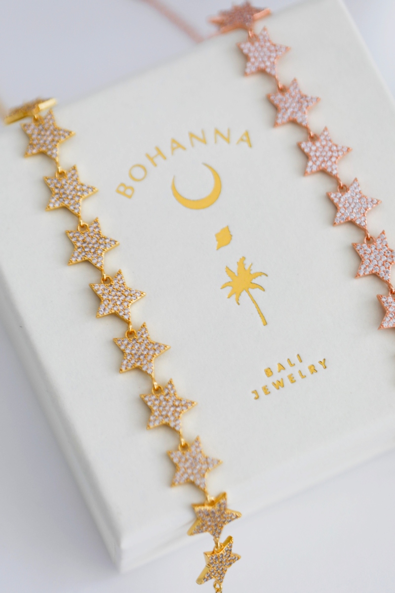 El Choker Padang es una gargantilla formada por estrellas que están adornadas con circonitas. Puedes elegir entre color Plata, Oro y Rosa.