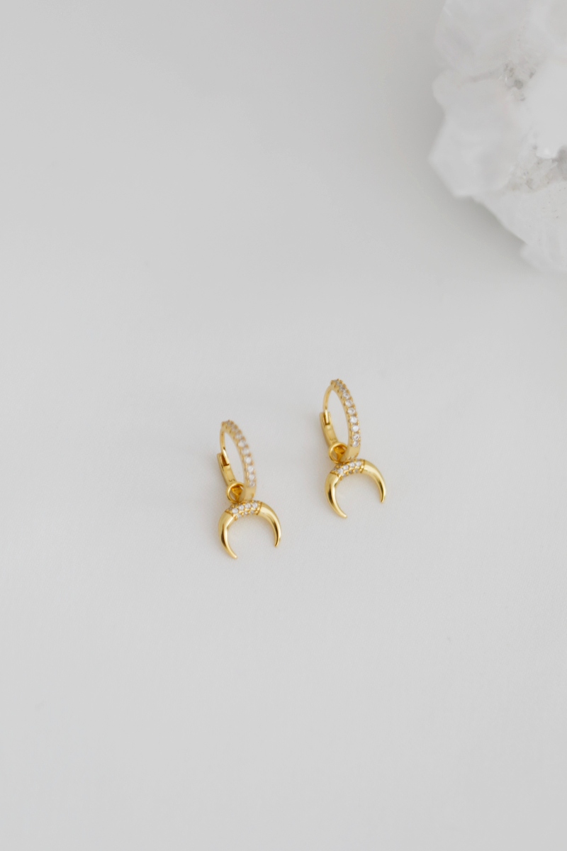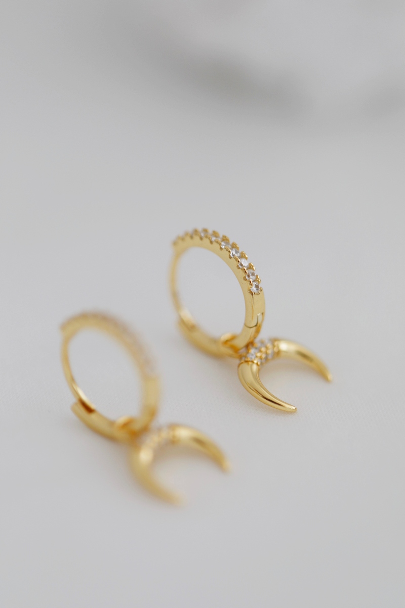 Los Pendientes Uluwatu están diseñados en Plata de Ley 925 y llevan un baño de Oro de 18kt. Son de tipo aro y sin tuerca, son de cierre de click. Llevan circonitas por el arito y un cuerno que se puede quitar y poner.